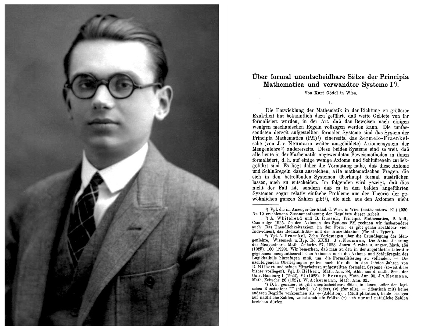 Gödel, K. (1931).Über formal unentscheidbare Sätze der Principia Mathematica und verwandter Systeme(“On Formally Undecidable Propositions of Principia Mathematica and Related Systems”). Monatshefte für Mathematik, 1931.